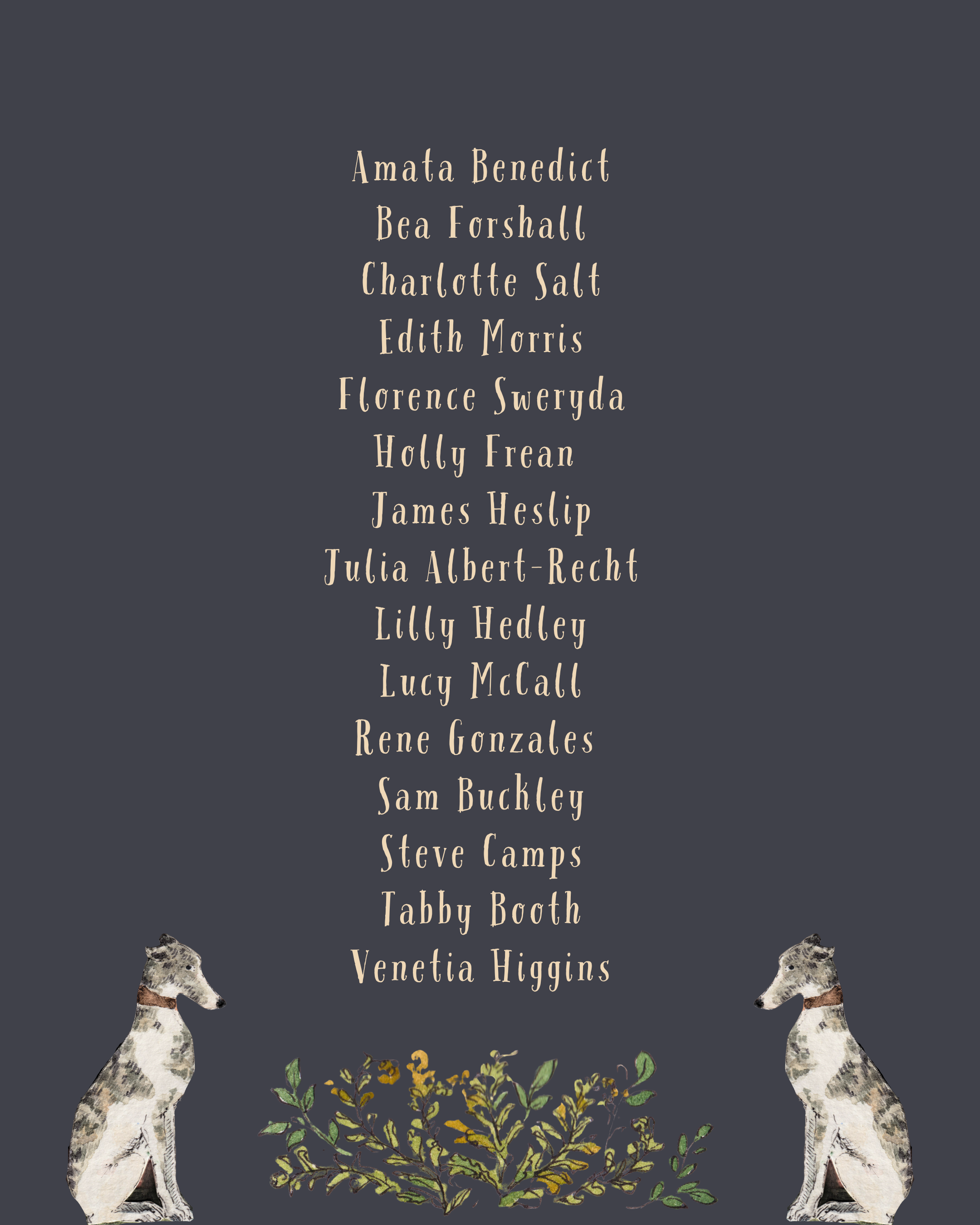 @venetiahiggins, @florence.sweryda, @tabby.booth.artist, @james_heslip_artist, @amatabenedict, @rene_thatpainterguy, @edith__morris, @samanthabuckleydesigns, @beaforshall, @lucymccallstudio, @juliaalbertrecht, @charlotte_salt_, @hollyfrean, @lillyhedleyprint, Steve Camps