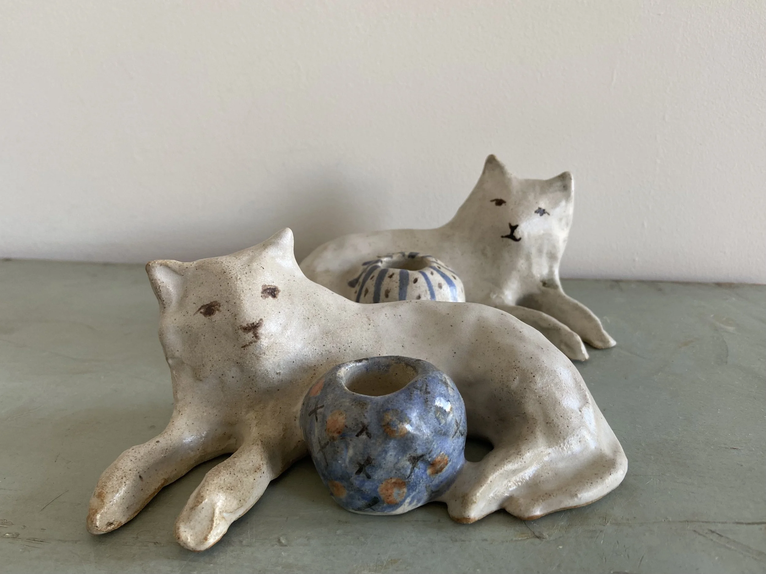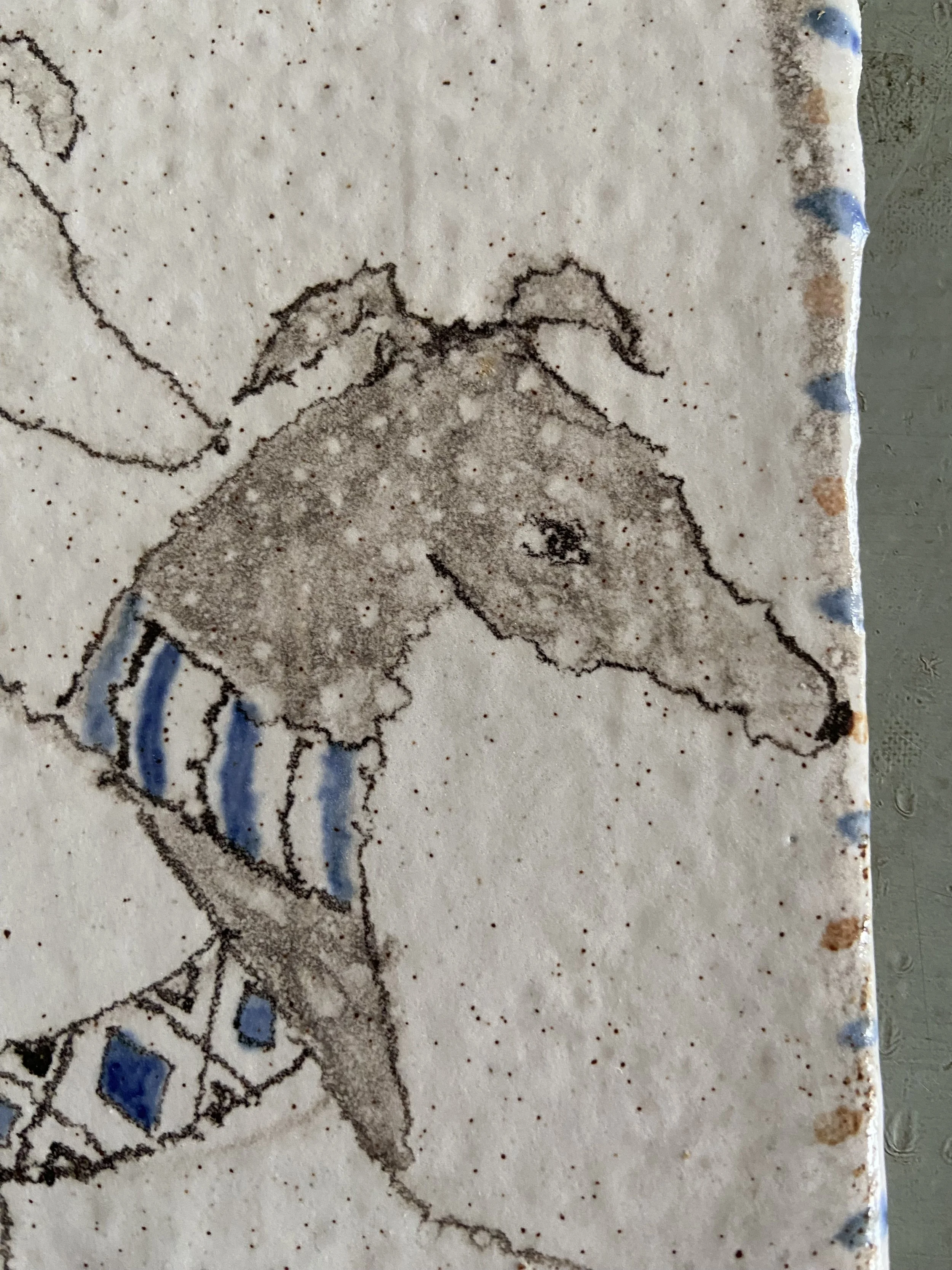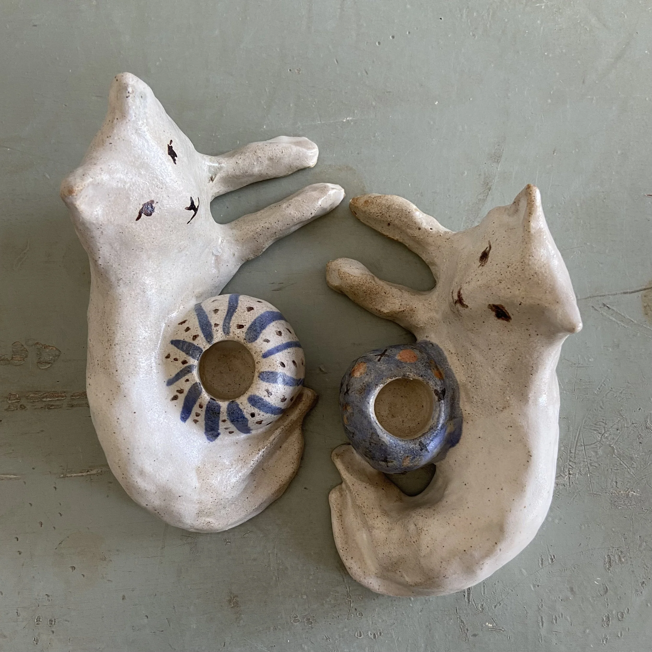 A hand rolled and cut bird decoration, made from white stoneware. Decorated with glossy white glaze and oxides.