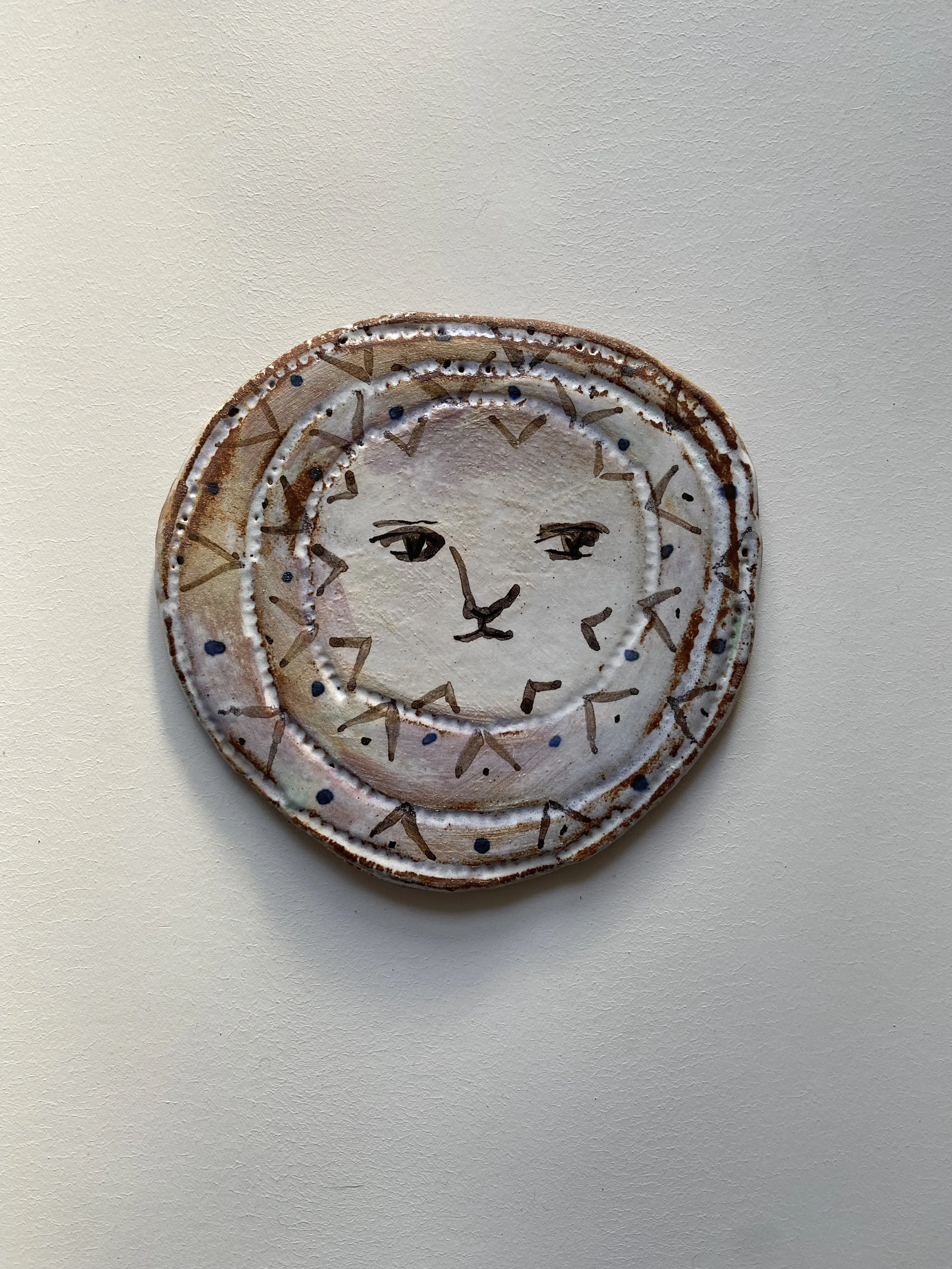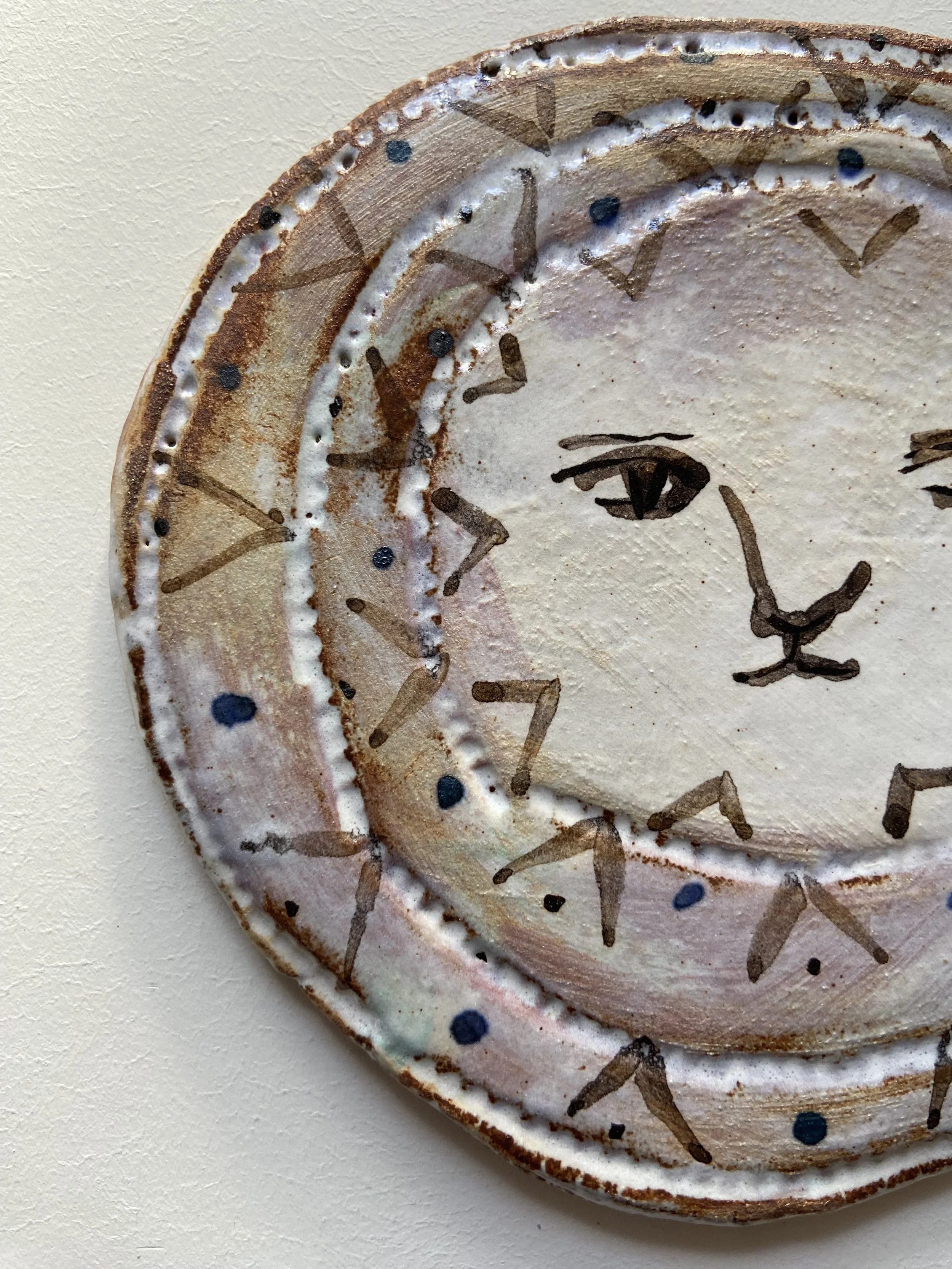 Handmade from red stoneware clay. Decorated with slip, glaze and oxides.