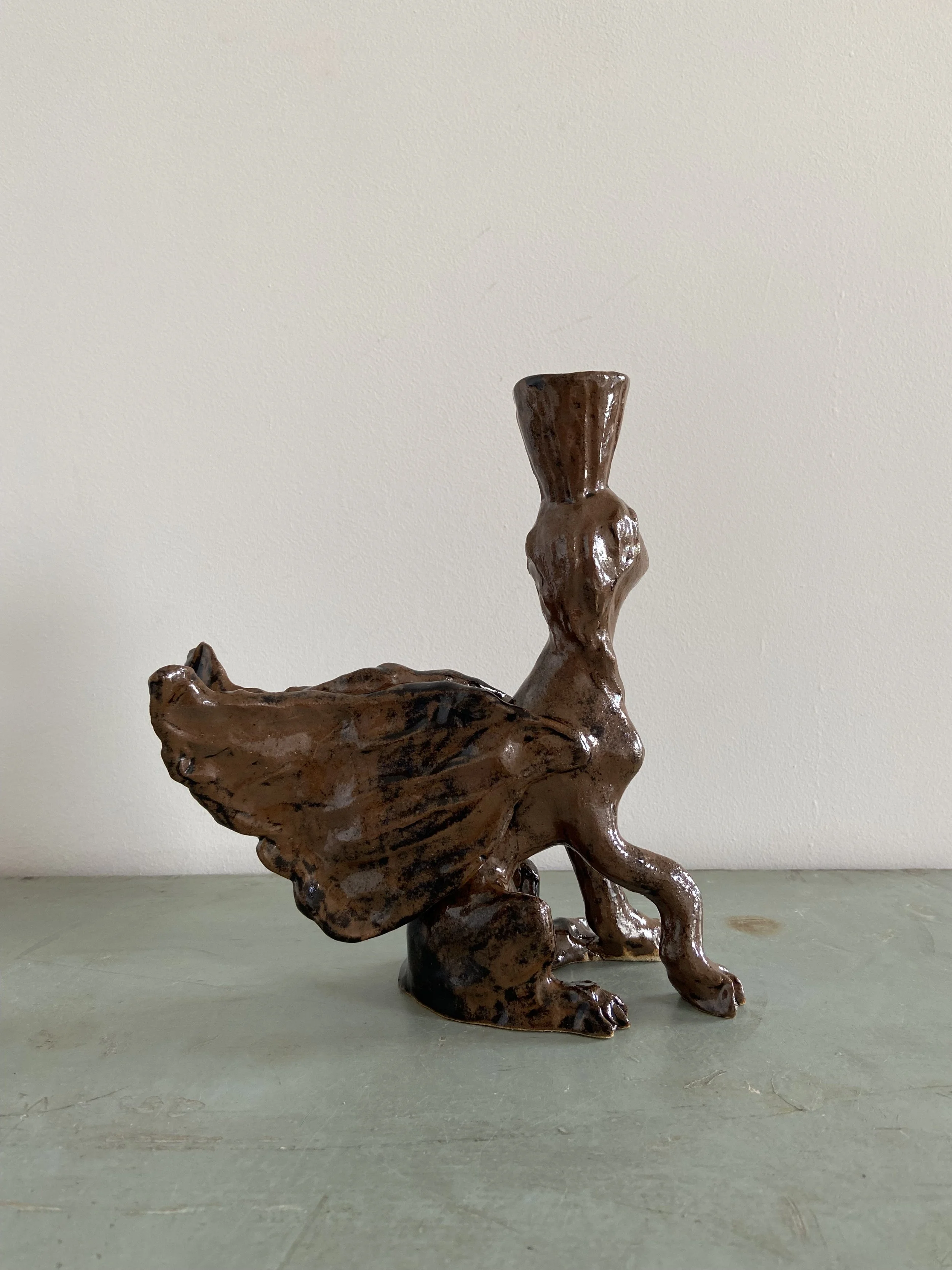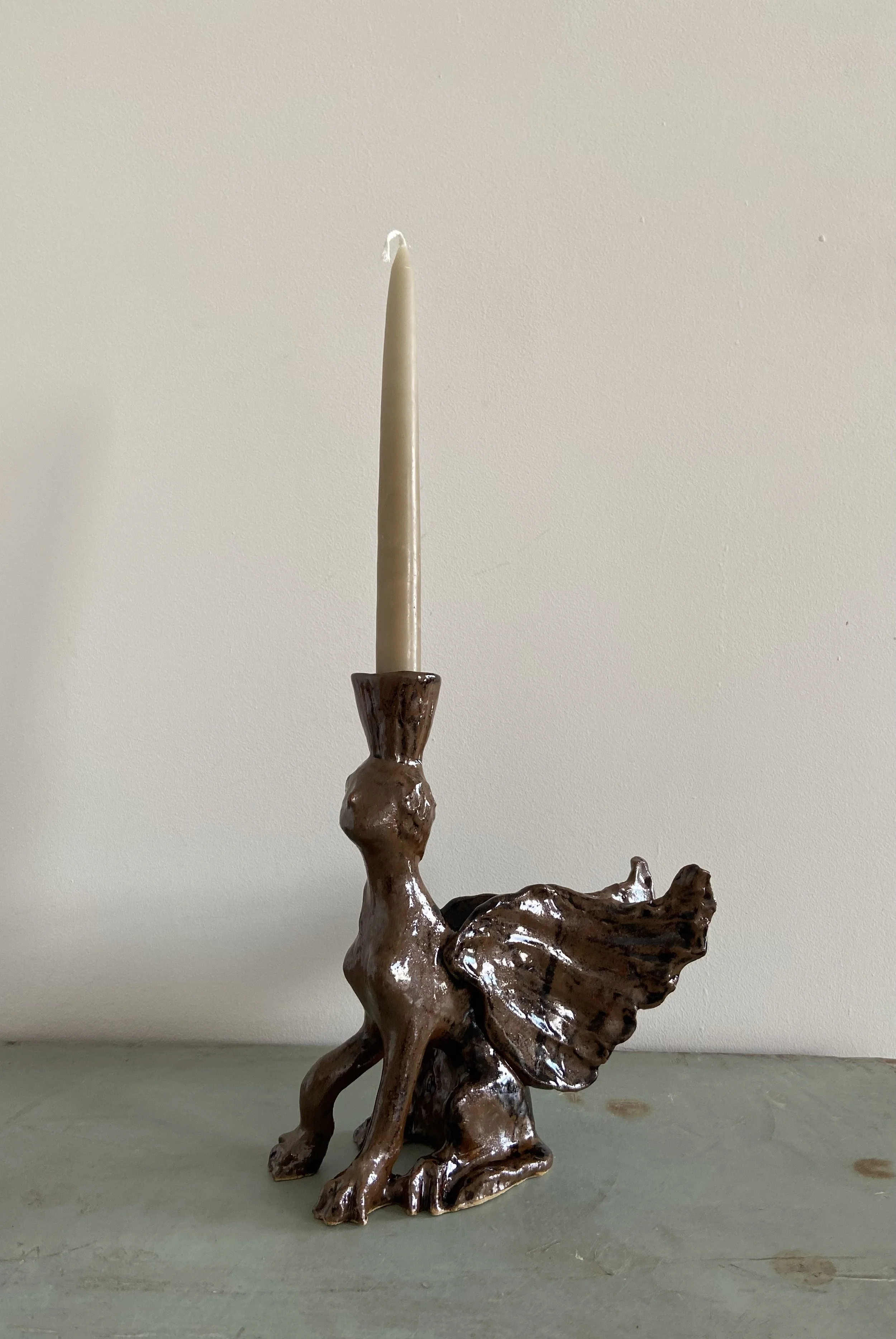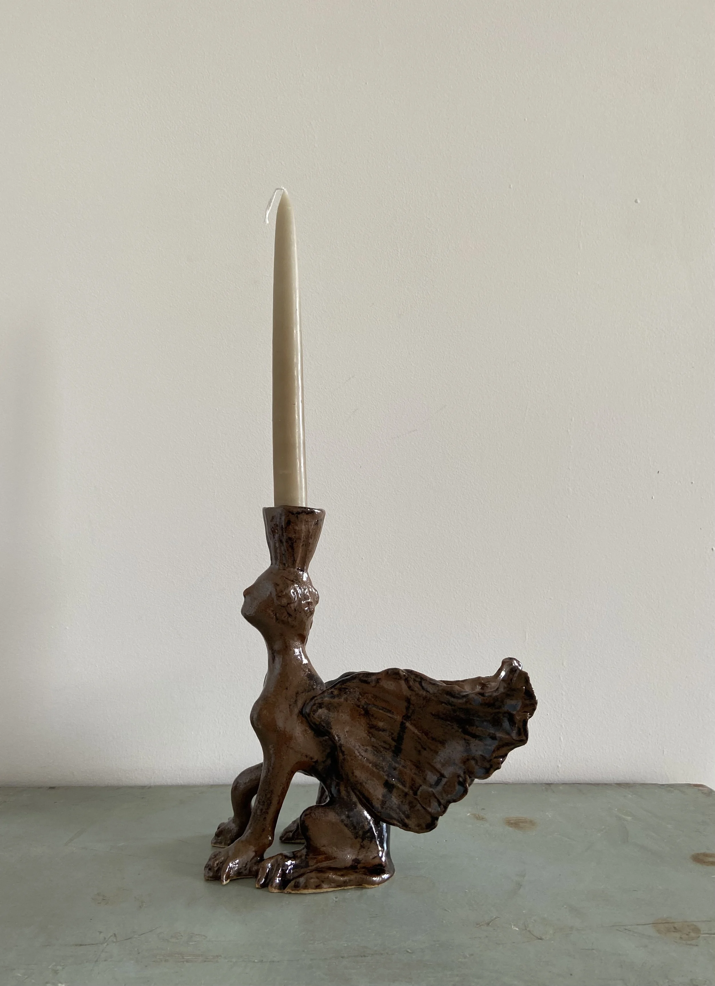 Handmade ceramic lion candle holders. Decorated with a combination of glaze and oxides.