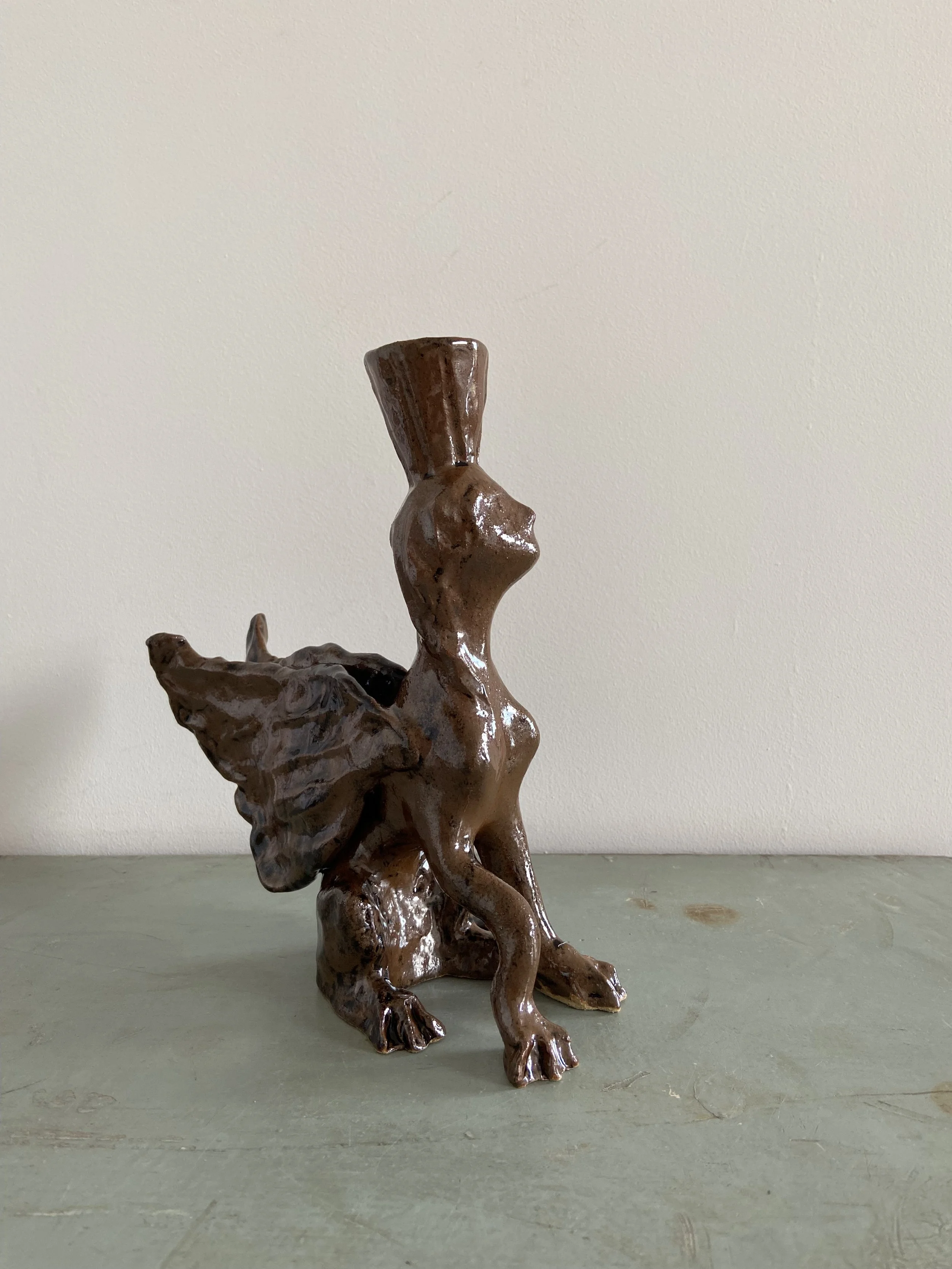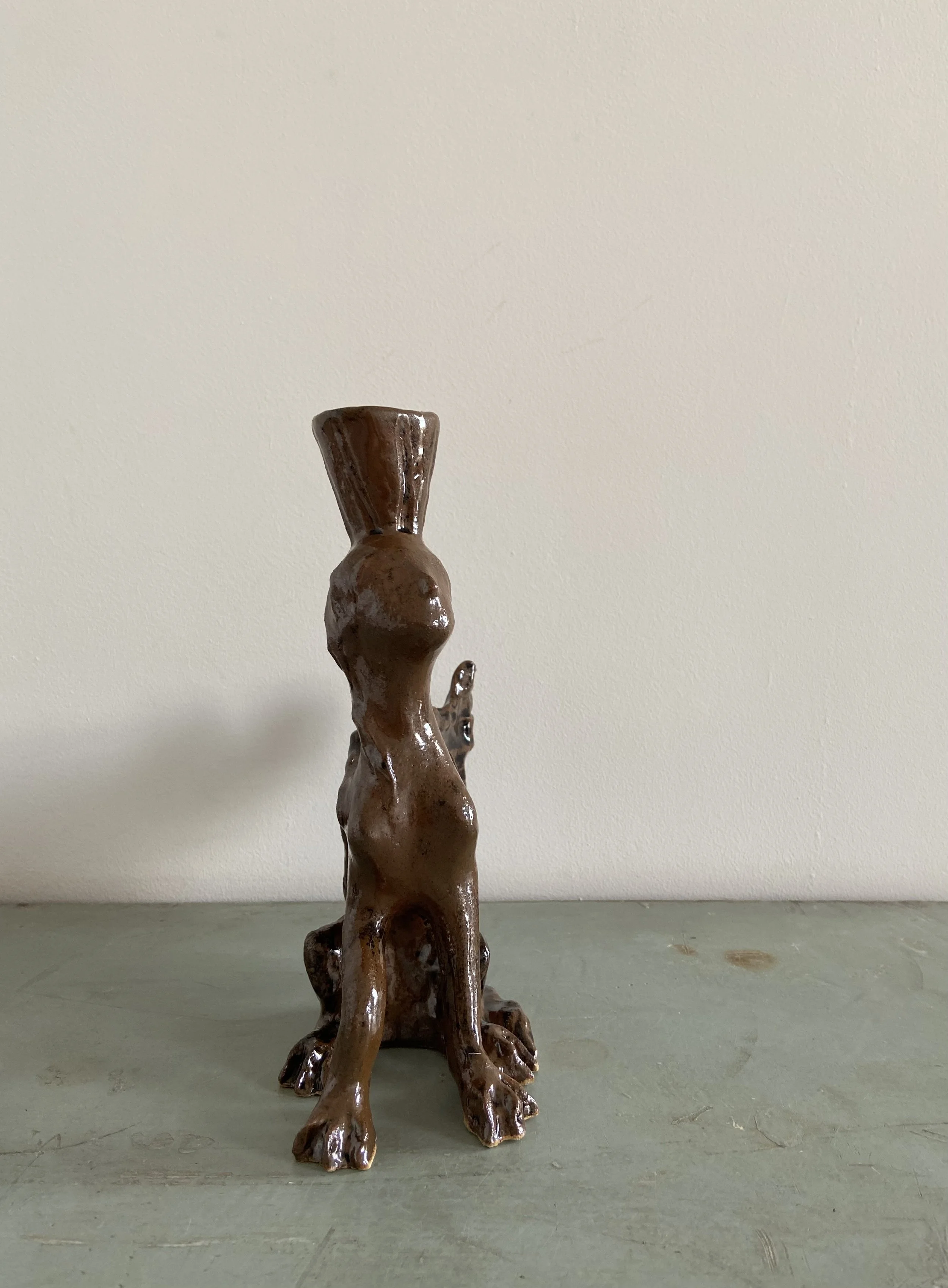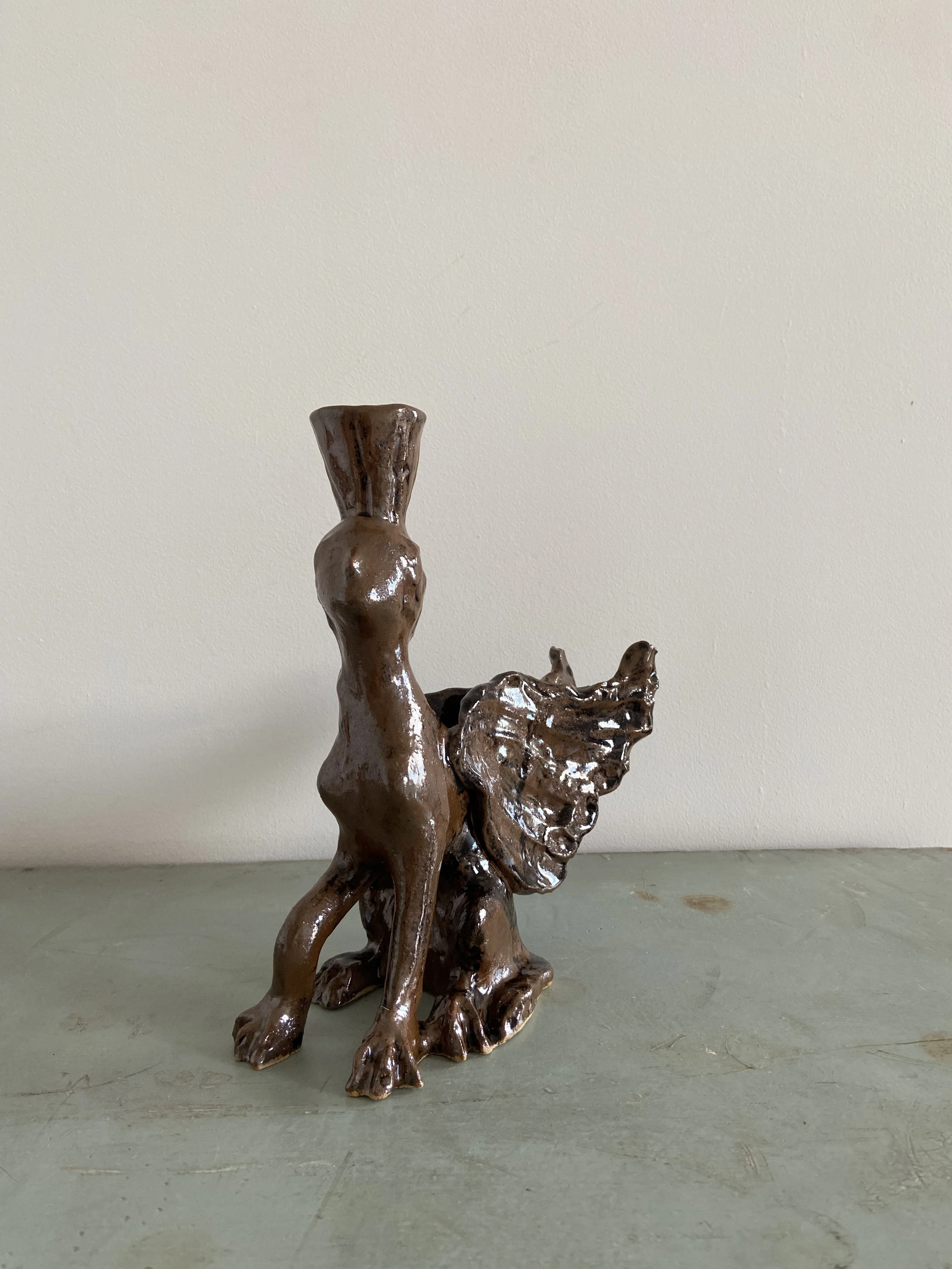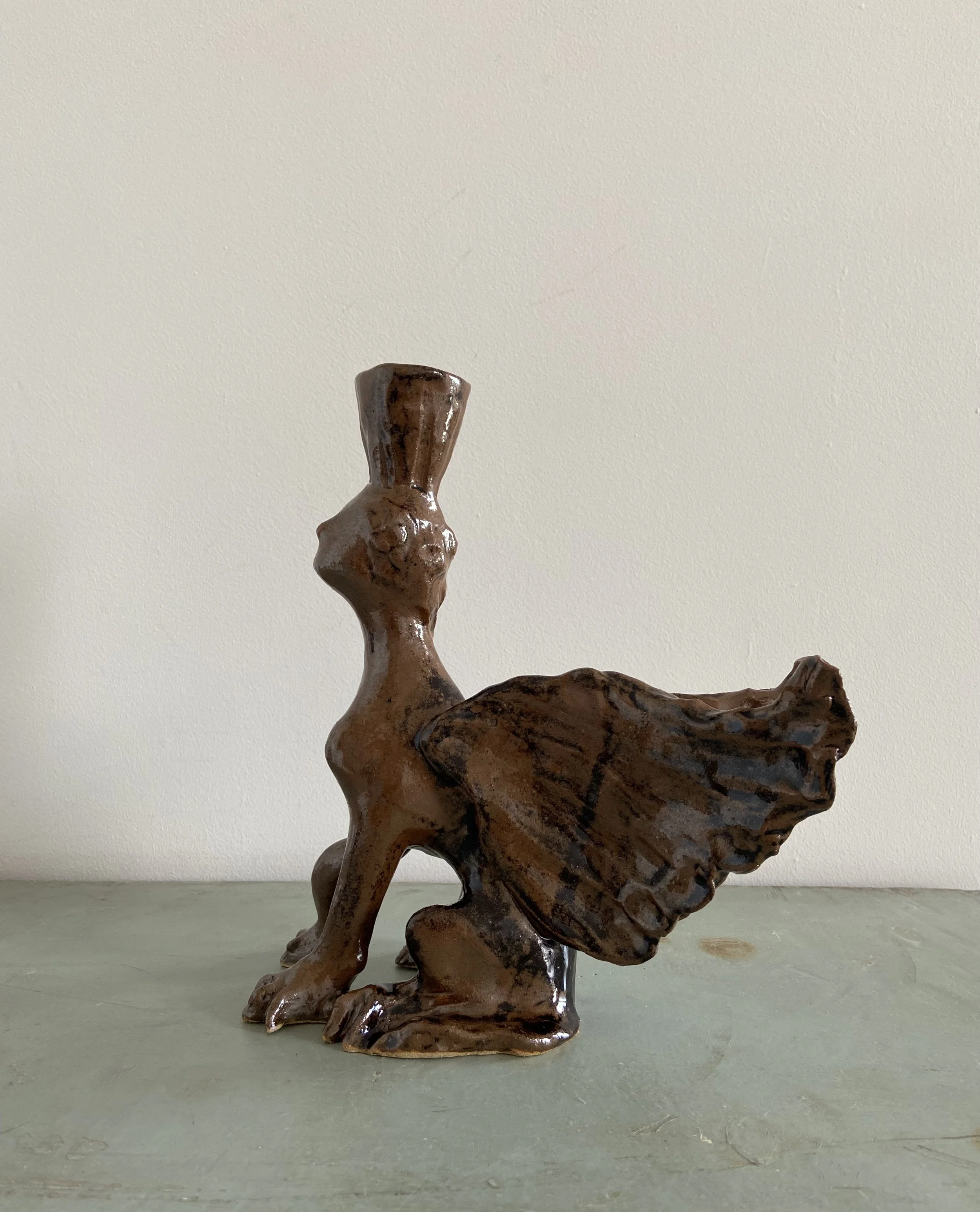 Handmade ceramic lion candle holders. Decorated with a combination of glaze and oxides.